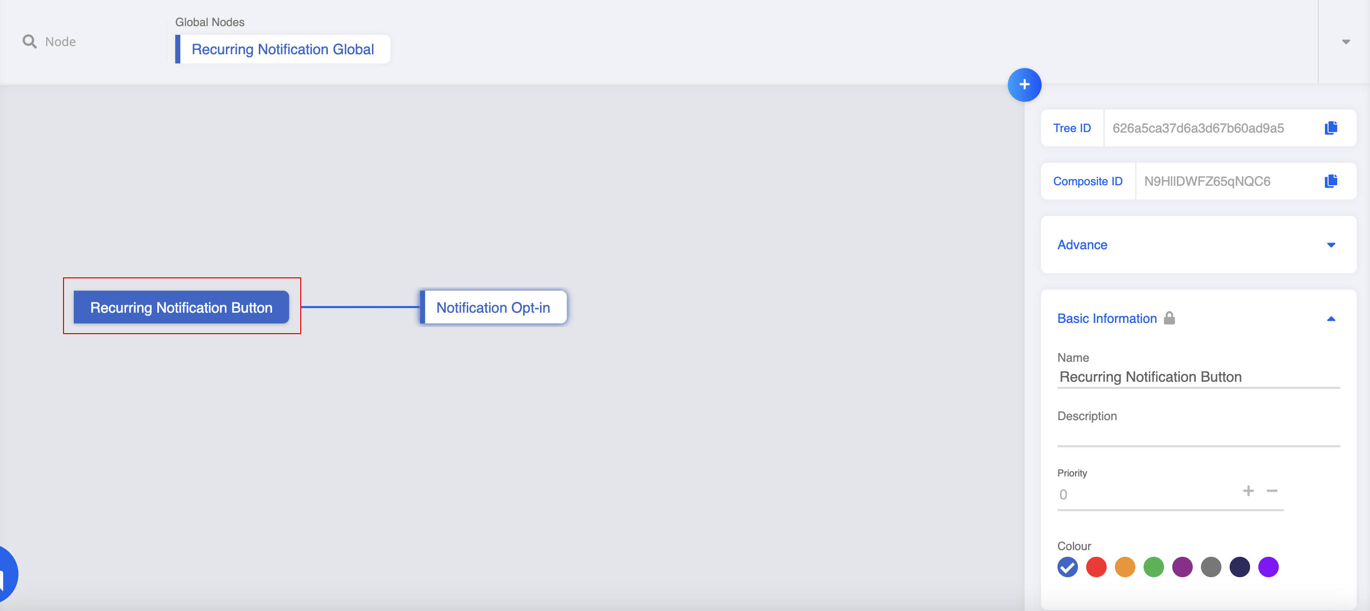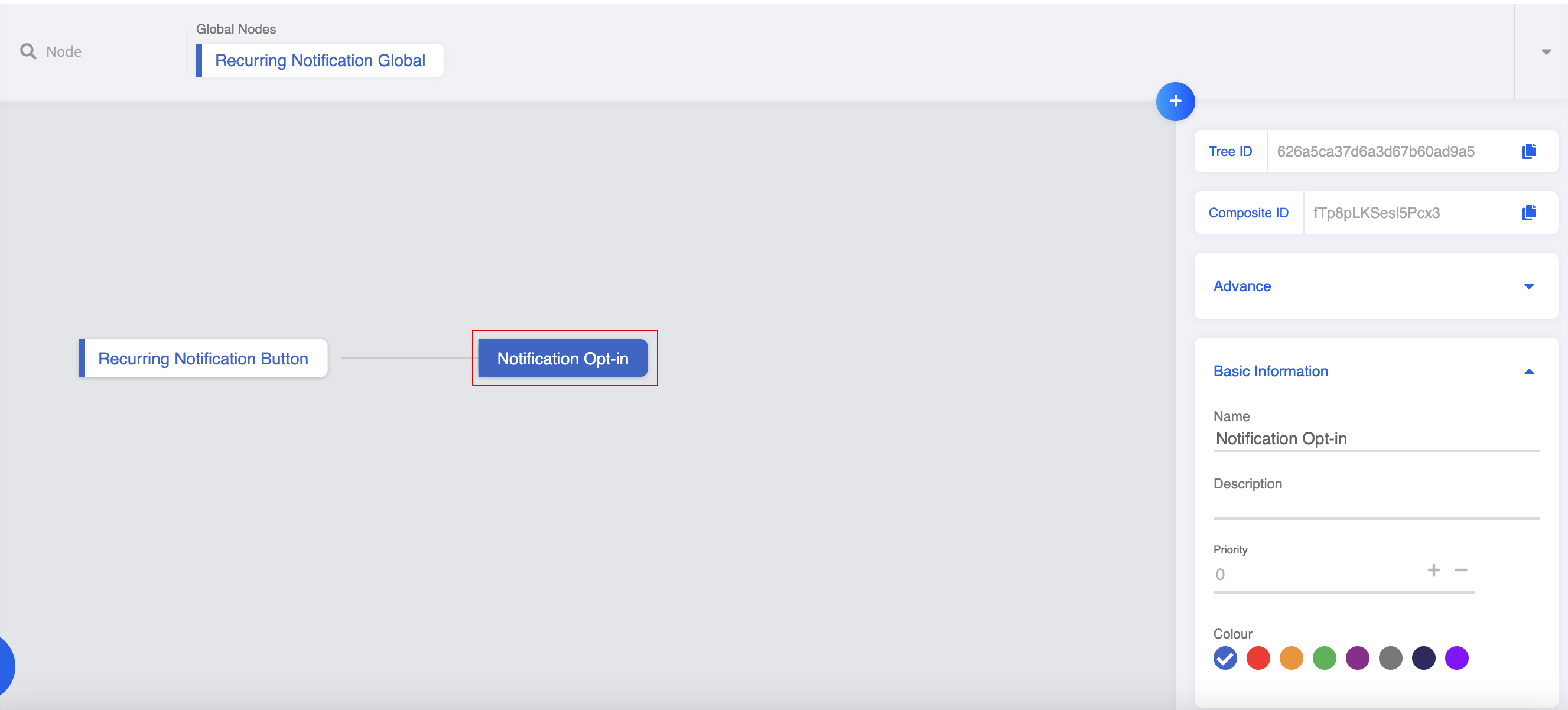 - Create a Tree Node following the and name it as "Notification Opt-in". This is the message displayed when the user agrees to receive the notification.