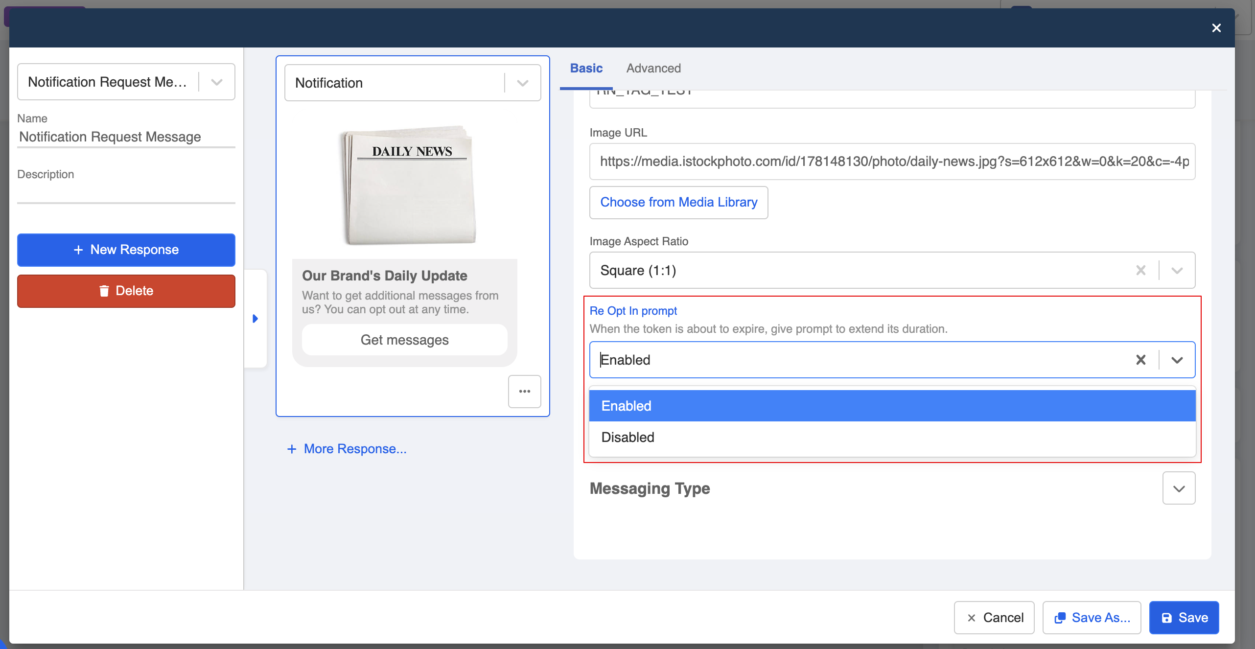 - When the notification token is about to expire, an automatic re-opt-in request will be sent to user.