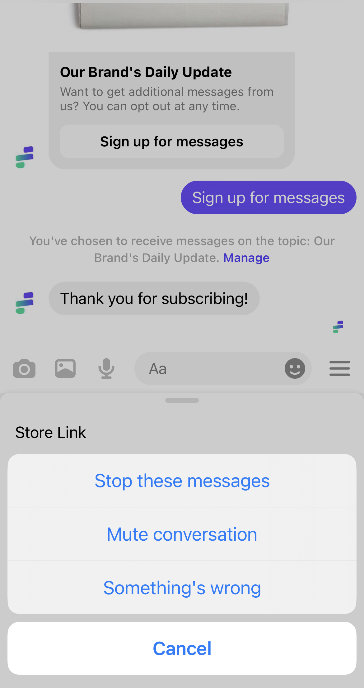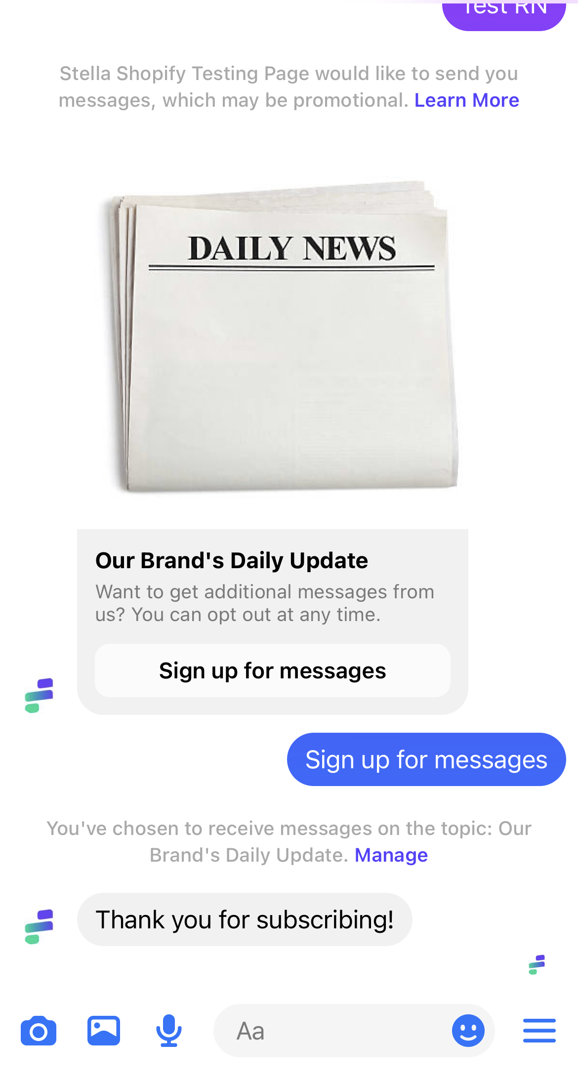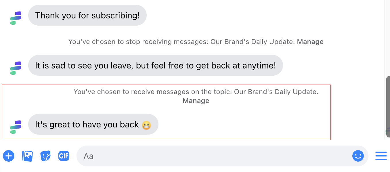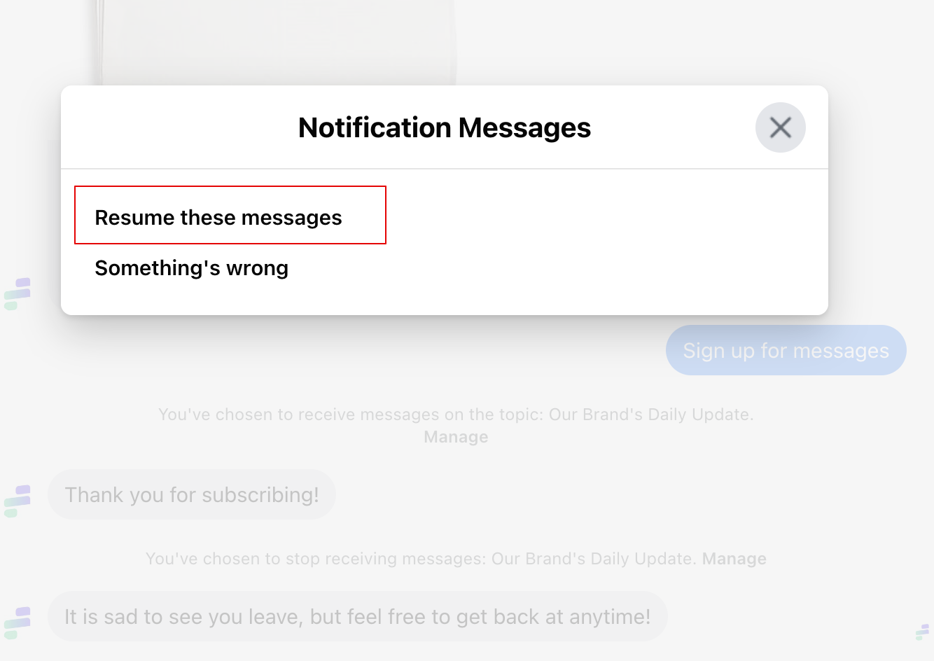 - In Messenger, the user can click on "Manage" to modify their consent for marketing notification.