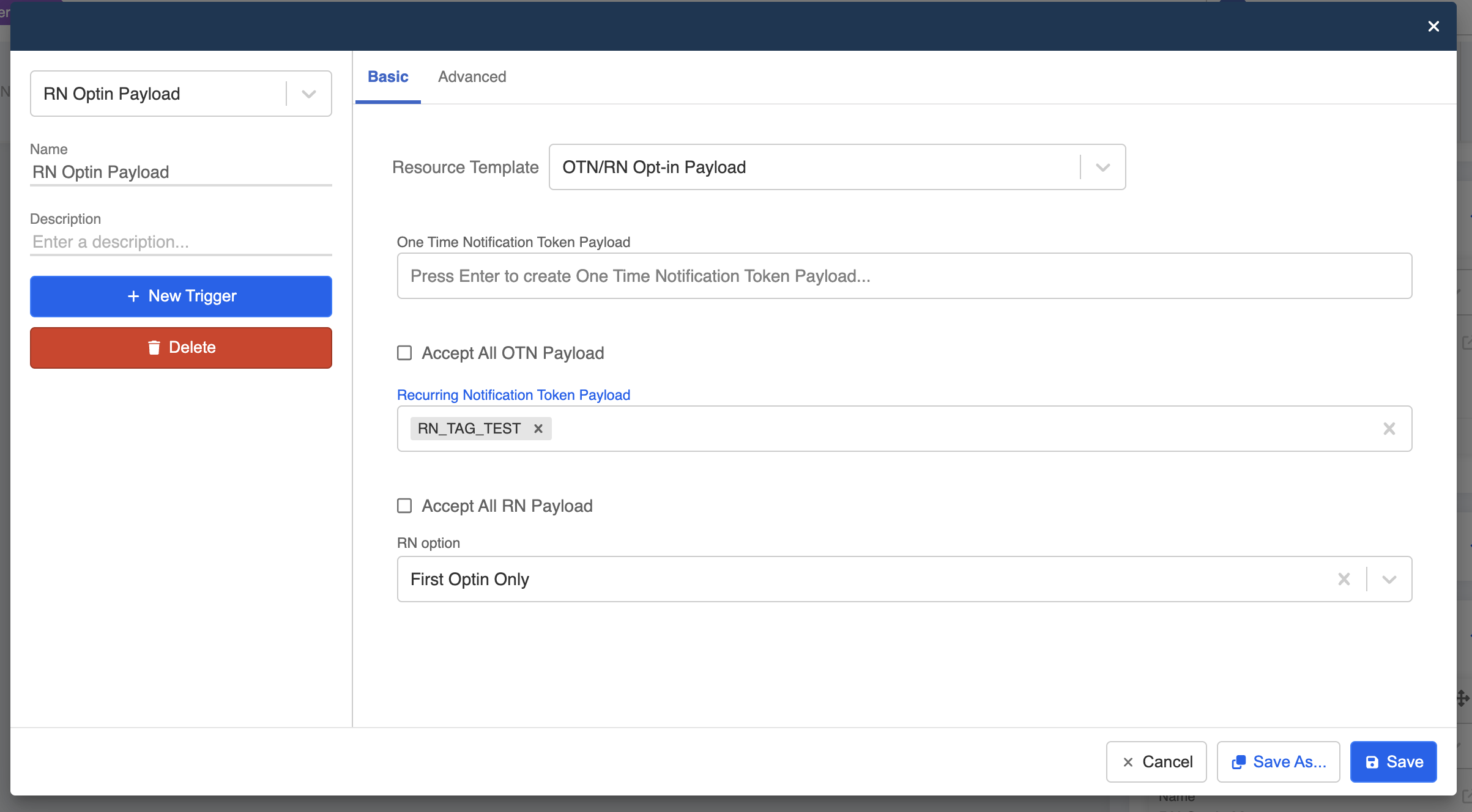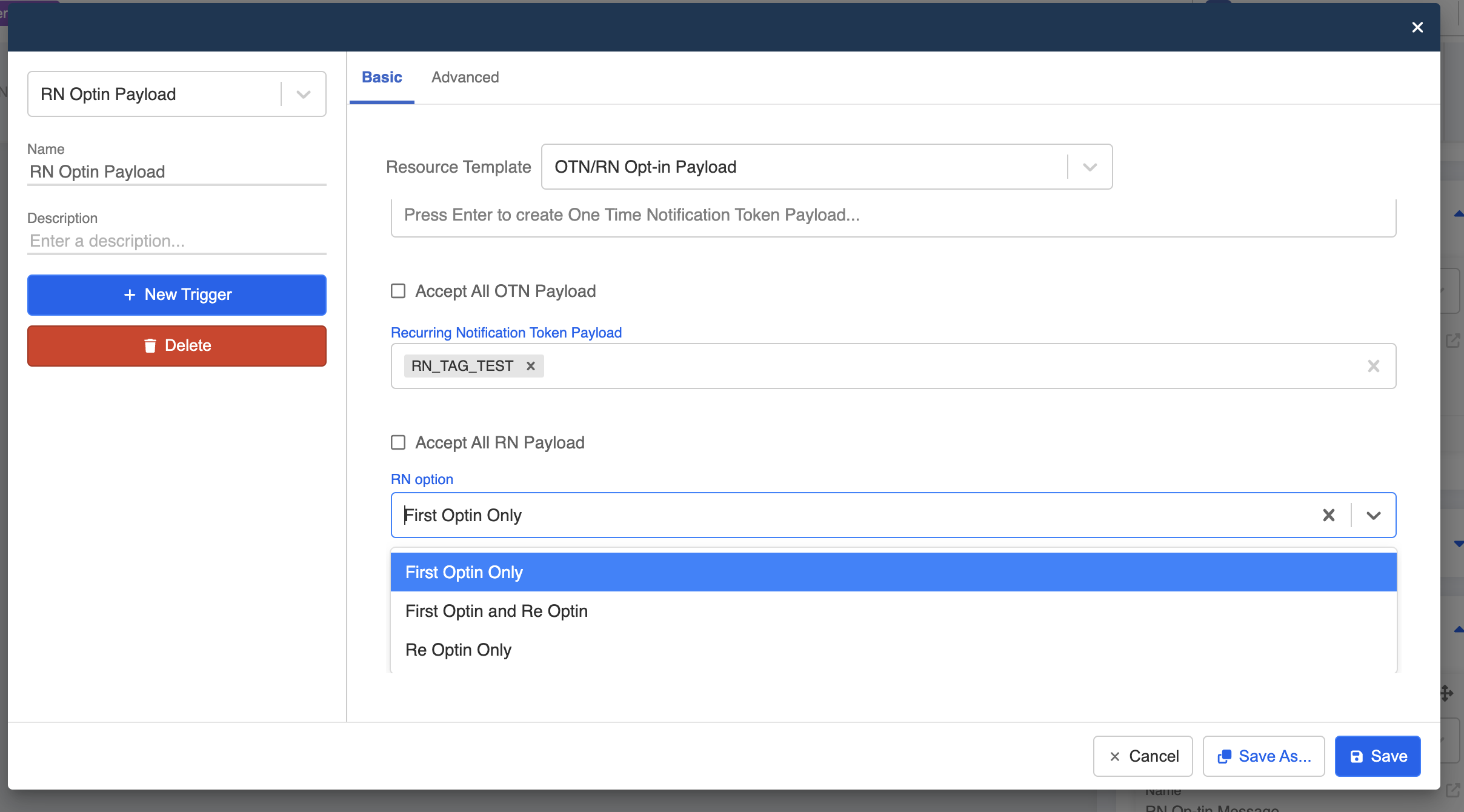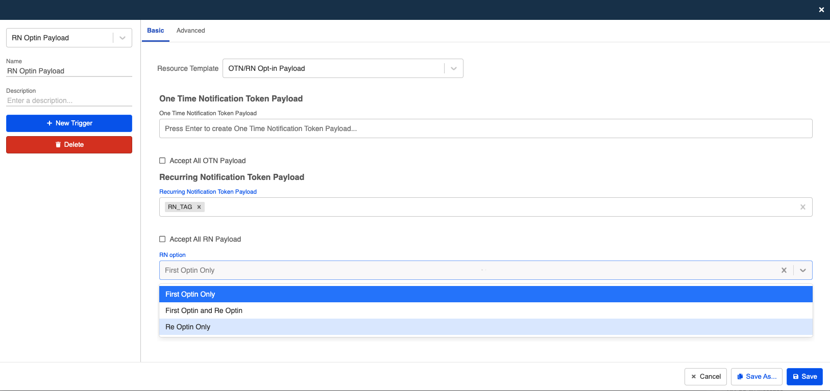 - Select the "RN Opt in" that works for your use case. Remember to save the trigger settings.