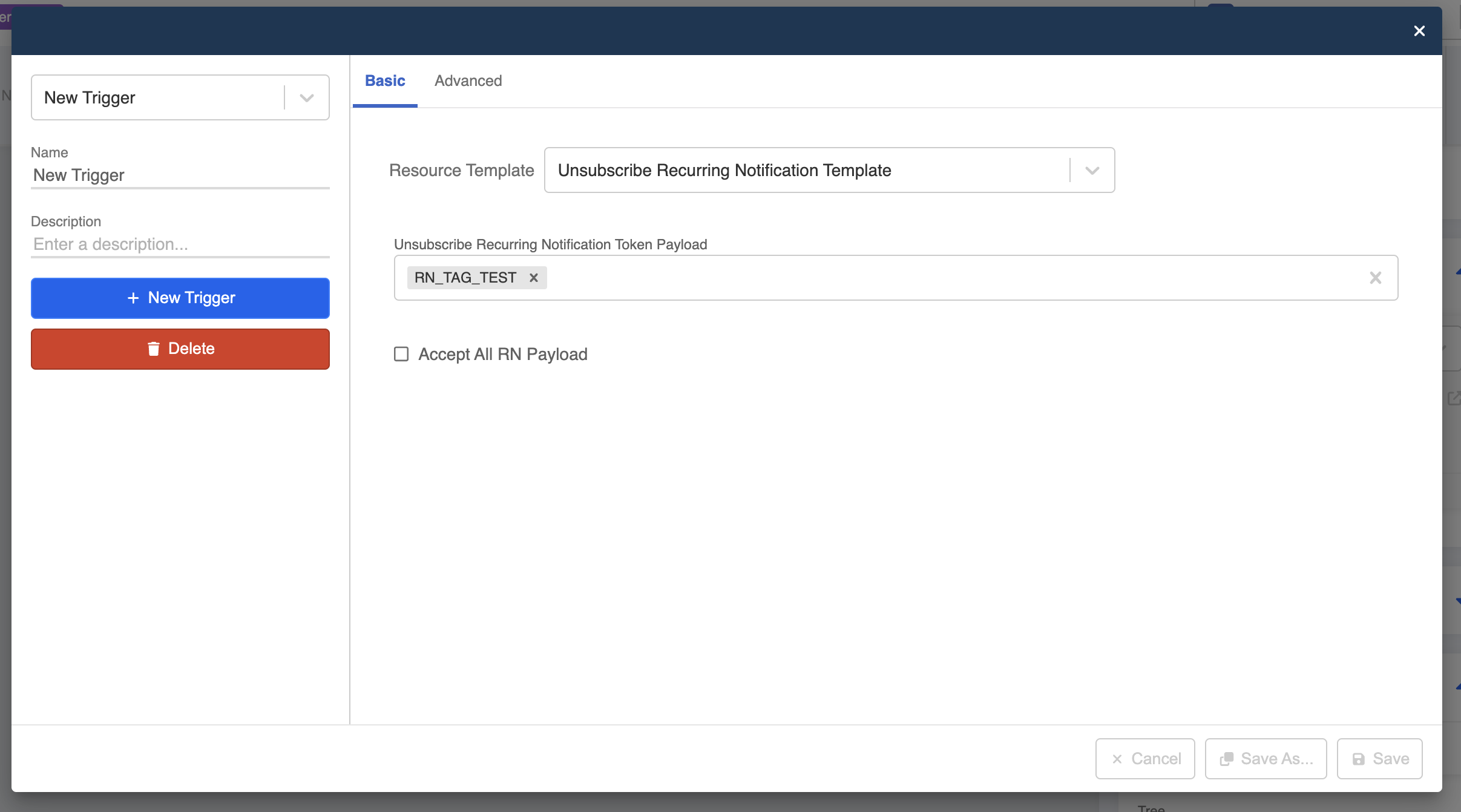 Accept All RN Payloadmeans that the unsubscription of any token will be considered by this trigger.