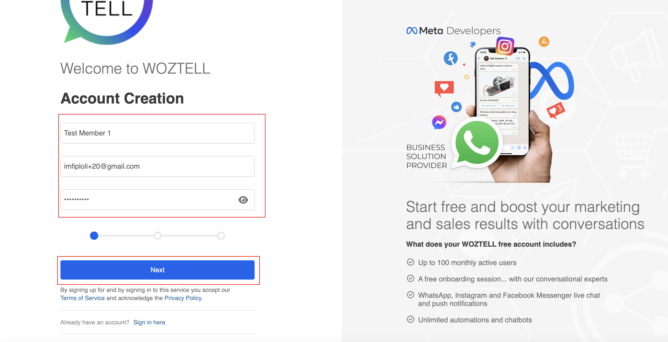 - If your email has already been registered with WOZTELL, you can log in directly. Otherwise, you will need to sign up for a new account.